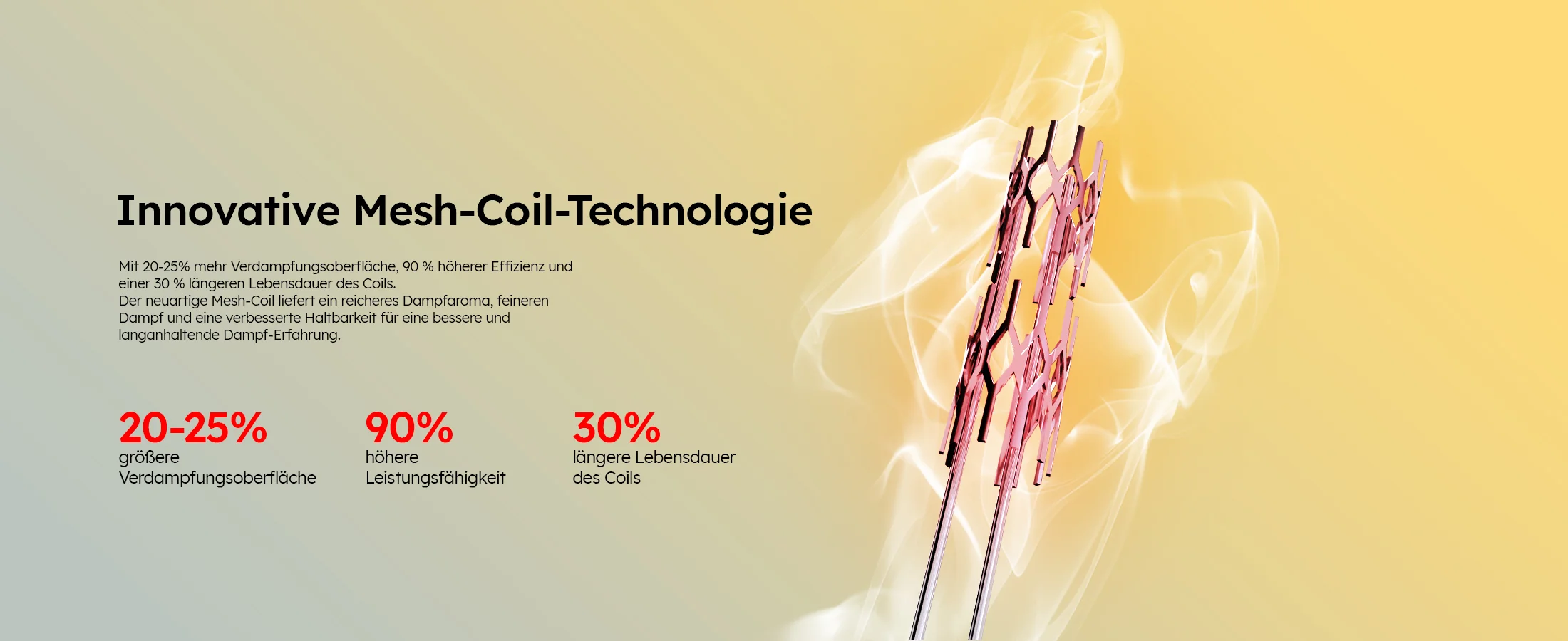 Diese Kombination sorgt für konstante Leistung, intensiven Geschmack und eine beachtliche Dampfentwicklung – auch bei längeren Sessions.